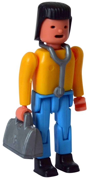 Artz mit Koffer und Stethoskop, Gärtnet mit Rasenmäher ….etc