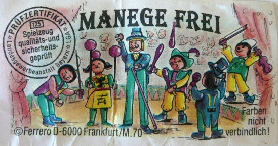 Dompteur +V (1 double sans BPZ), Ball-Artistin +V (1 double sans BPZ), Stelzenmann (1 double sans BPZ) +V (pas le bon autocollant veste), Jongleur +V, Circus Direktor (pas le bon autocollant veste),(1 double sans BPZ) +V, Musik-Clown