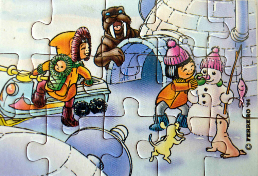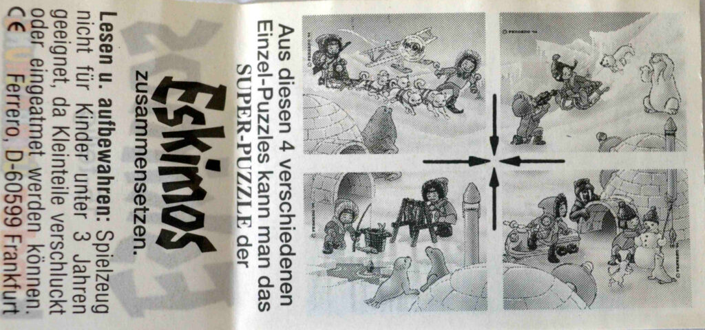 Jäger (1 double sans BPZ), Schneewanderer (1 double sans BPZ) , Eskimofrau (1 double sans BPZ) , Fischer, Eskimomutter, Hundeschlitten, Forscher, Junge mit Schneemann , Mädchen mit Schlitten (2 doubles sans BPZ)