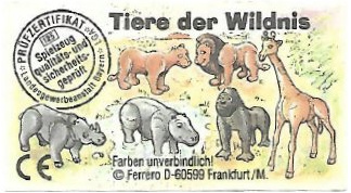 Tierfilmer mit Kamera +V , Tierpflegerin mit gazellenbaby +V (1 sans BPZ), tierpflegerin mit Affe +V, Tierärztin mit Löwenbaby +V (1 sans BPZ), Medizinmann mit Medizinbeutel +V (2 sans BPZ), Jäger mit Speer u.Schild +V V V V V , Medizinmann mit Zeremonienstab + V V V (1 sans BPZ), Tourist mit Fernglas (2 sans BPZ), Jäger mit Pfeil u. Bogen +V (coiffe rouge), Frau mit Kochstelle (2 sans BPZ), Frau mit Krug und Stössel + V(1 sans BPZ)
