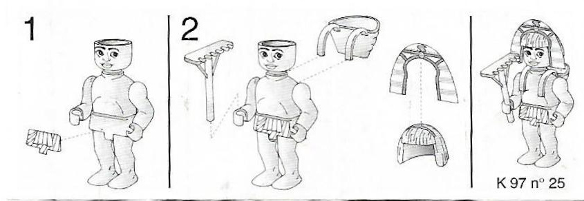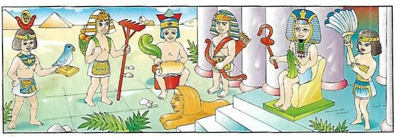 Priester mit Vogel (2 sans BPZ), Ägypter mit Harke (6 sans BPZ), Schreiber mit feder und papyrusrolle (1 sans BPZ), Krieger mit Pfeil und Bogen (2 sans BPZ), Pharao (2 sans BPZ), Dienerin mit Fächer (5 sans BPZ)