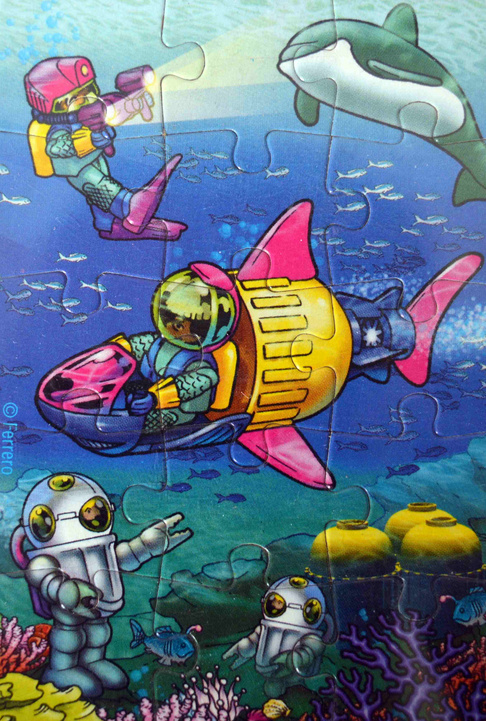 Aquarianische Prinzessin, Magellan der Transportwal +V, Ozeaner mit scooter +V (1), Aquanaut mit Shark-Scooter, Tiefseetaucher, Aquanautin mit Unterwasserleuchte (1 sans BPZ), Aquanaut mit Wave-Rider, Cook der Rettungsdelphin +V, Aquanaut mit Wave-Board, Aquanaut mit Unterwasserkamera (1 sans BPZ), Aquanaut mit Betäubungsharpune